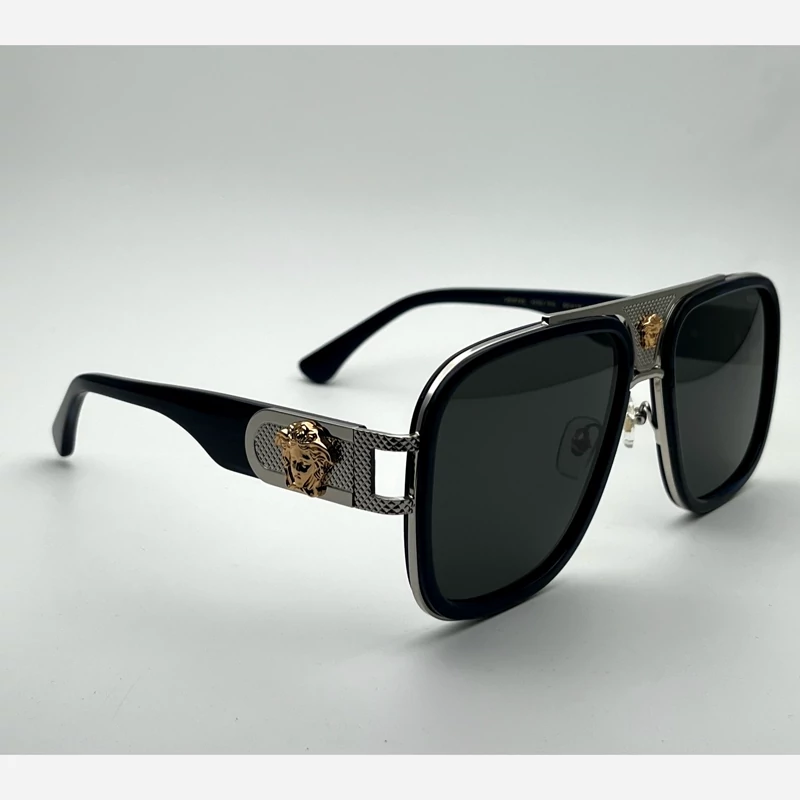عینک آفتابی مردانه اورجینال VERSACEکد VE6742پددار آرم عینک رو دسته و عدسی هک شده فرم آبی رنگ دسته نقره ای مناسب اقایون