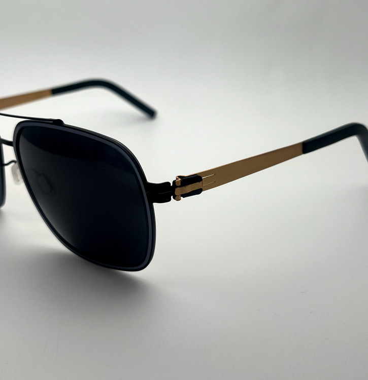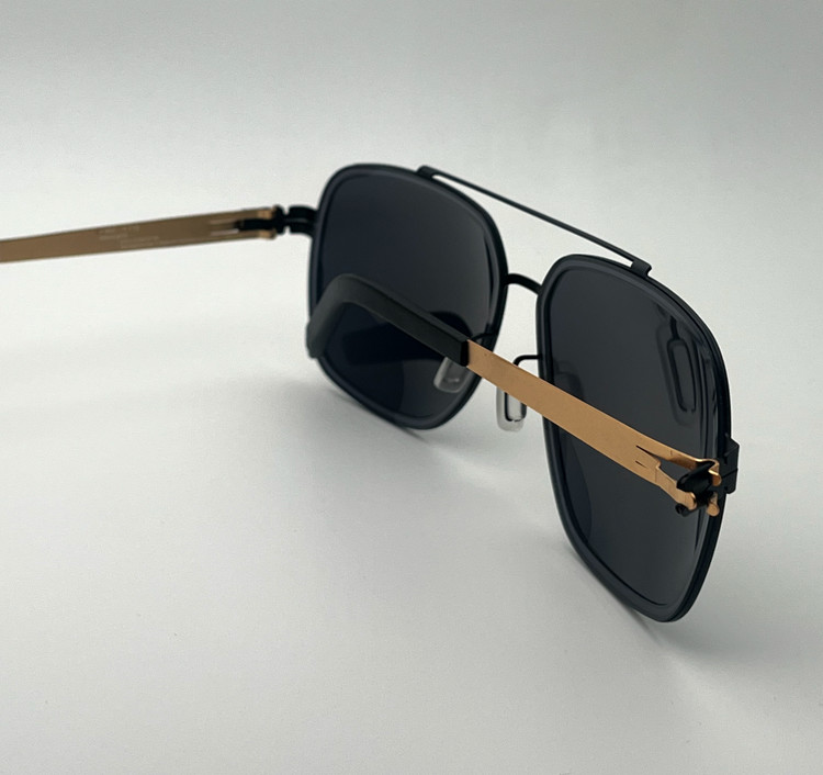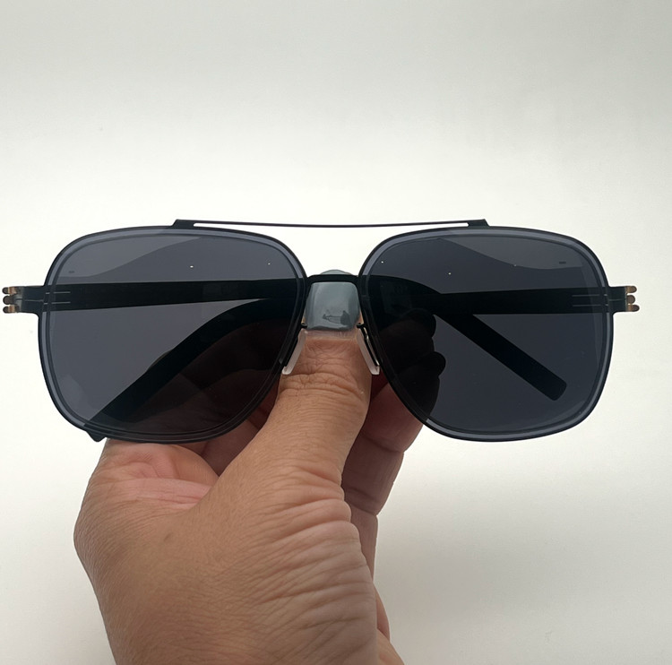 رو دسته عینک مشخصات کامل با کد شماره تماس شرکت آیس برلین نوشته شده