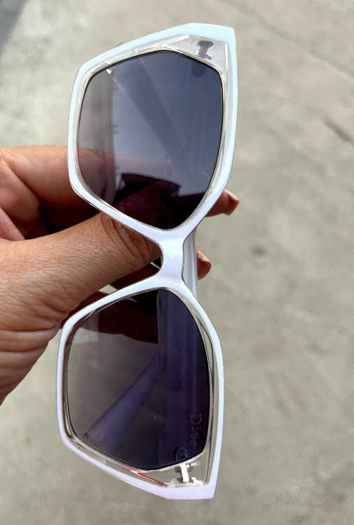 عینک آفتابی شیک و باکیفیت از برند معتبر Dior، با طراحی جدید و فریم سفید جذاب. مناسب برای استایلهای روزمره و رسمی.