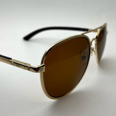 عینک کارتیر با ترکیب فریم طلایی و دستههای طرح چوب، جلوهای لوکس و کلاسیک دارد. عدسیهای سبز رنگ آن علاوه بر زیبایی، دیدی شفاف و طبیعی در نور آفتاب ایجاد میکنند. طراحی سبک و ارگونومیک این مدل باعث میشود حتی در استفاده طولانیمدت