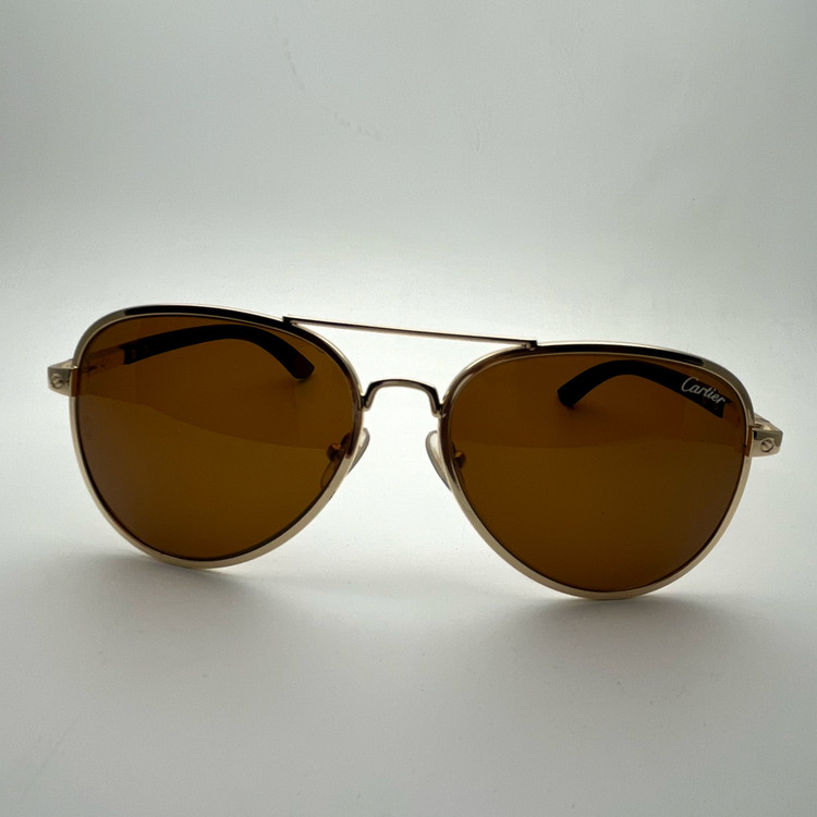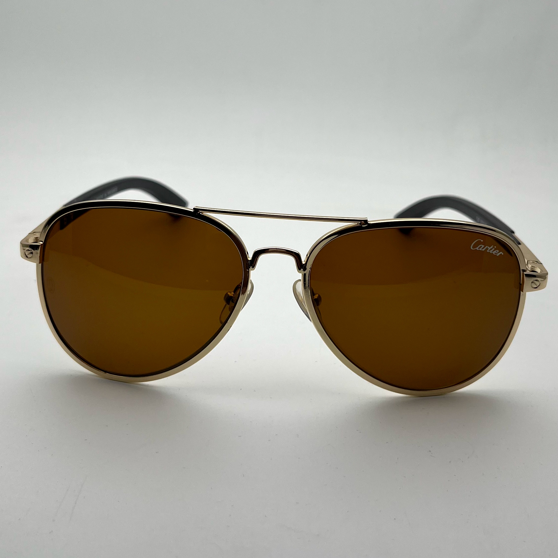عینک کارتیر با ترکیب فریم طلایی و دستههای طرح چوب، جلوهای لوکس و کلاسیک دارد. عدسیهای سبز رنگ آن علاوه بر زیبایی، دیدی شفاف و طبیعی در نور آفتاب ایجاد میکنند. طراحی سبک و ارگونومیک این مدل باعث میشود حتی در استفاده طولانیمدت