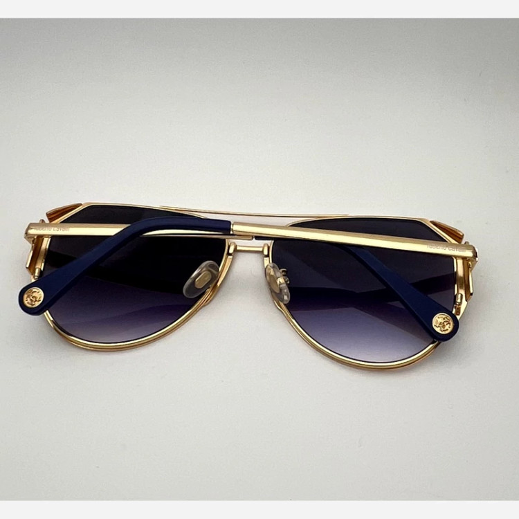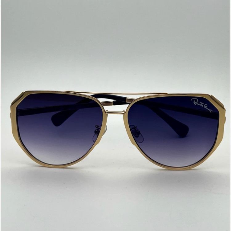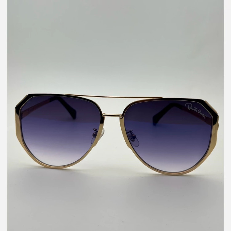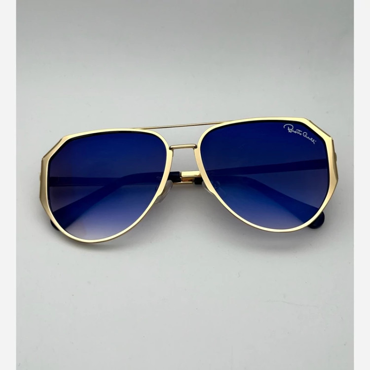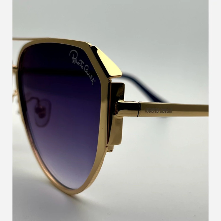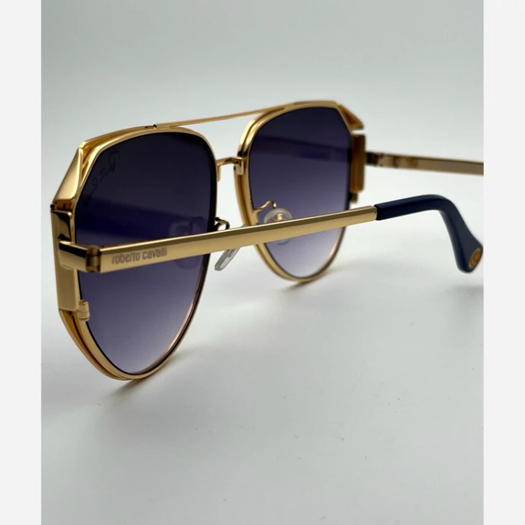 عینک آفتابی مردانه مارک Robert cavalll با طراحی منحصر به فرد طراحی بسیار شیک و خاص رنگ عدسی آبی رنگ فرو طلای یوو400