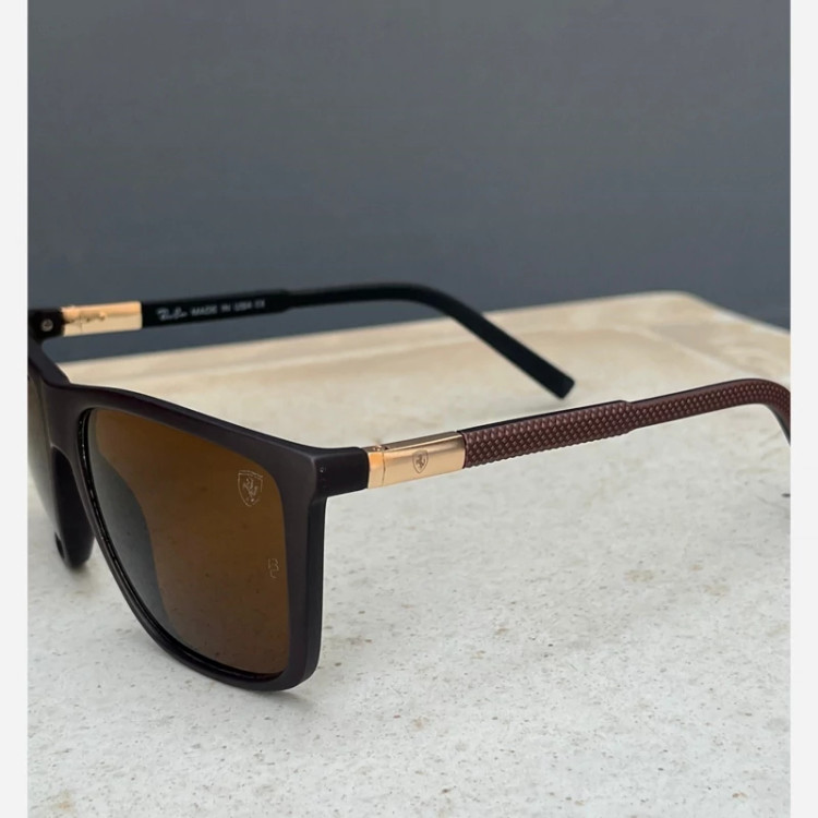 عینک آفتابی مردانه مارک Rayban عدسی قهوه ای یوو عدسی شیشه بسیار محکم با دوام طراحی زیبا دسته عینک مناسب آقایون