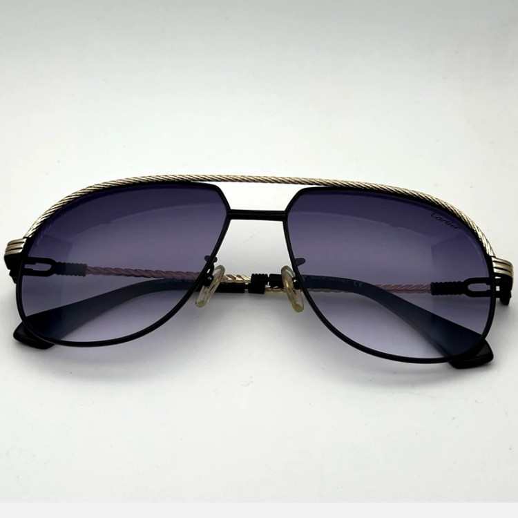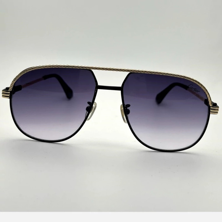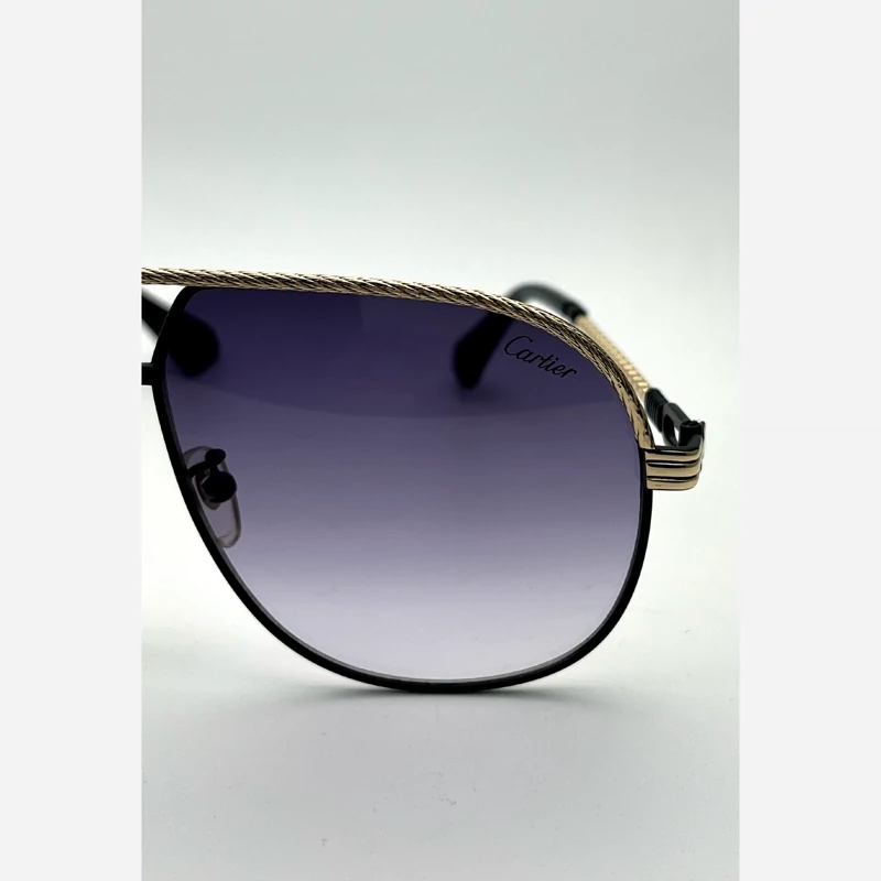 عینک آفتابی Cartier عدسی دودی پدیدار لولا فلزی اورجینال مناسب خانما رنگ فرو مشکی و طلایی دسته زیبا