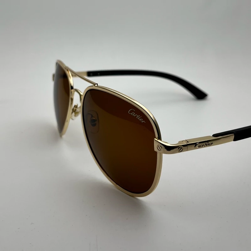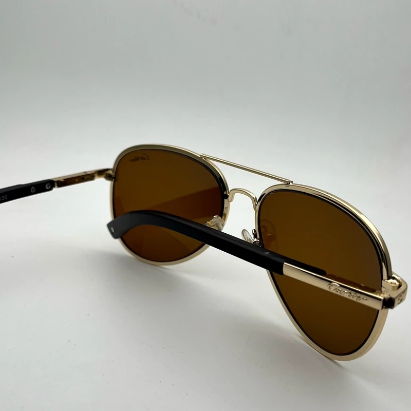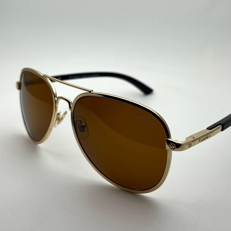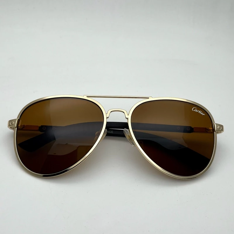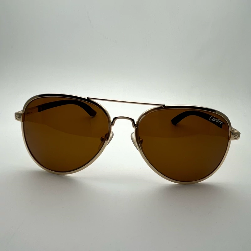 عینک کارتیر با ترکیب فریم طلایی و دستههای طرح چوب، جلوهای لوکس و کلاسیک دارد. عدسیهای سبز رنگ آن علاوه بر زیبایی، دیدی شفاف و طبیعی در نور آفتاب ایجاد میکنند. طراحی سبک و ارگونومیک این مدل باعث میشود حتی در استفاده طولانیمدت نیز احساس راحتی داشته باشید.