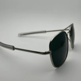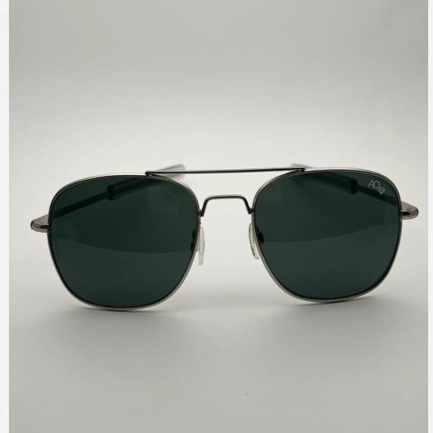 عینک آفتابی مردانه آمریکن اپتیکال مدل خلبانی aoعدسی شیشه طراحی خاص فرم فلزی رنگ نقره ای رنگ ثابت صد الژی و حساسیت