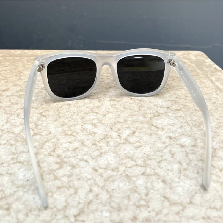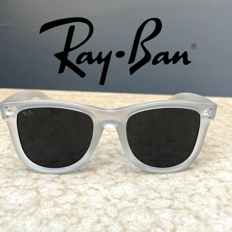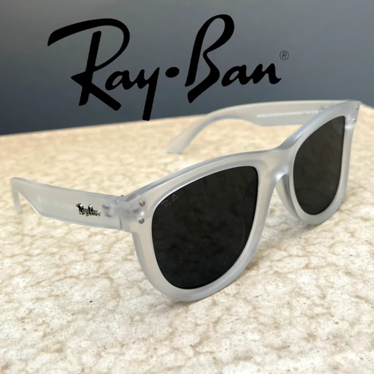 عینک آفتابی مردانه مارک ری بن فرم سفید عدسی مشکی لولا فلزی محکم یوو عدسی استاندارد یوو400 مناسب رانندگی و فعالیت روزانه
