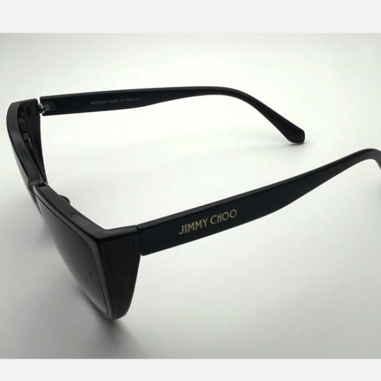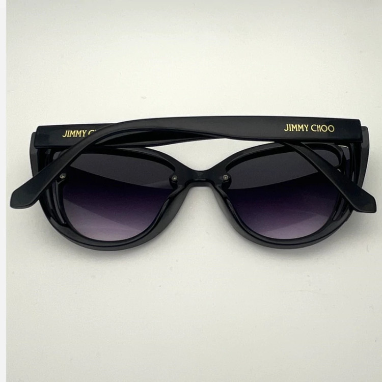 عینک آفتابی زنانه مارک JIMMY HOO رنگ فرم مشکی عدسی دودی طراحی خاص عینک مناسب خانما لولا فلزی بغل دارفرم کائوچو