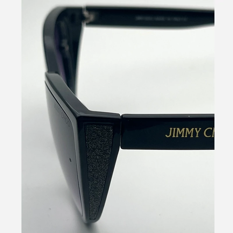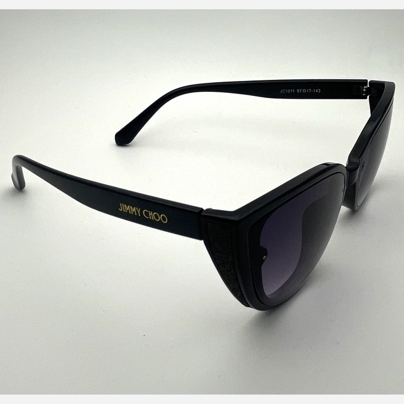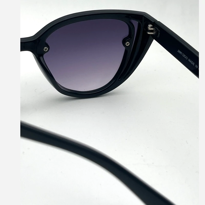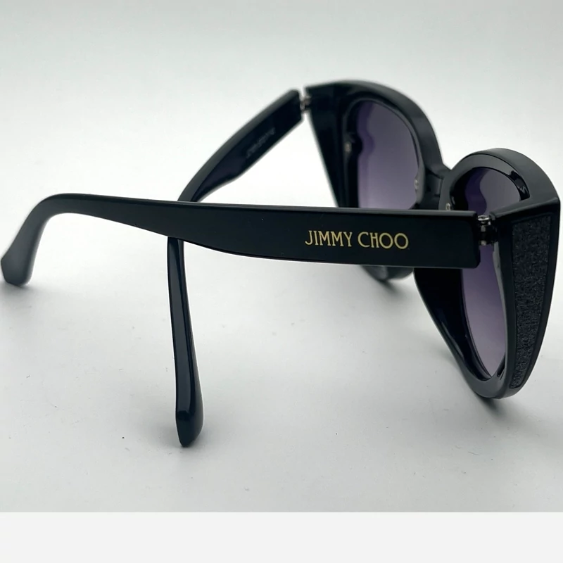 عینک آفتابی زنانه مارک JIMMY HOO رنگ فرم مشکی عدسی دودی طراحی خاص عینک مناسب خانما لولا فلزی بغل دارفرم کائوچو
