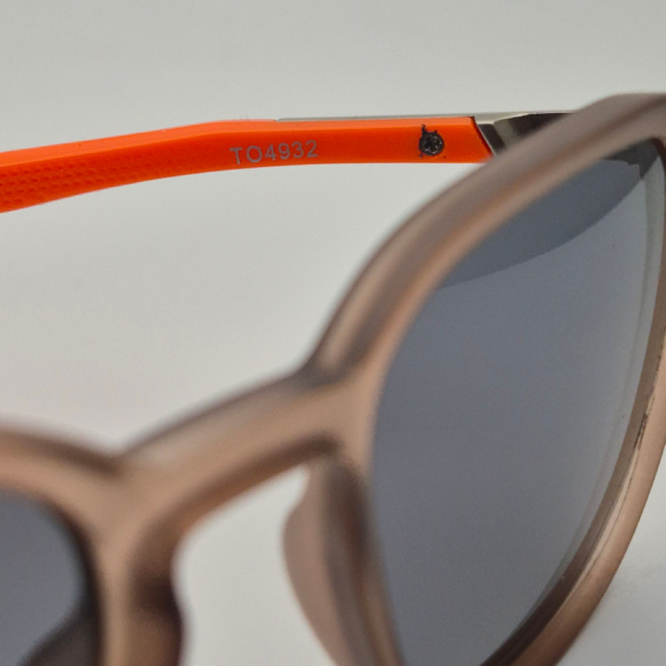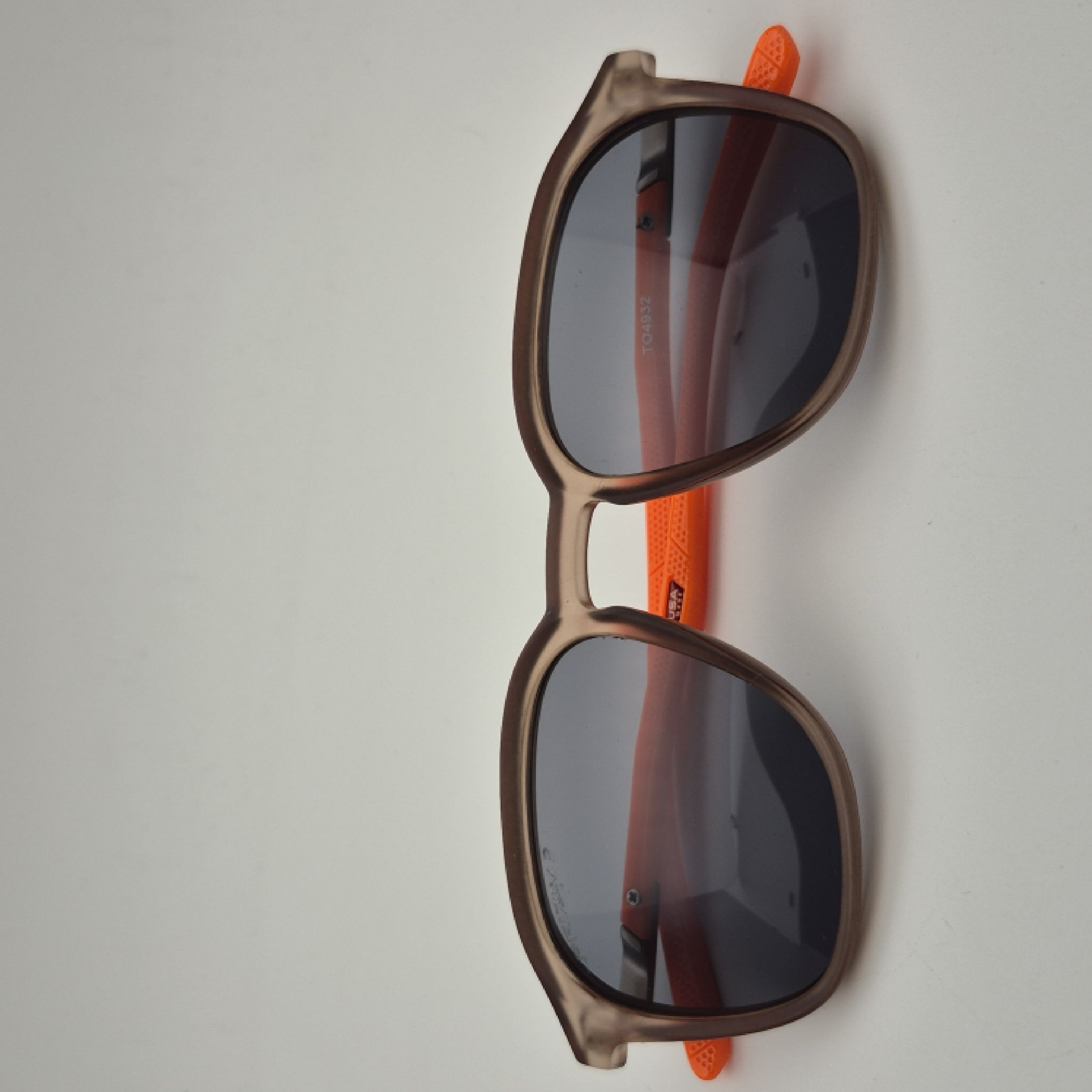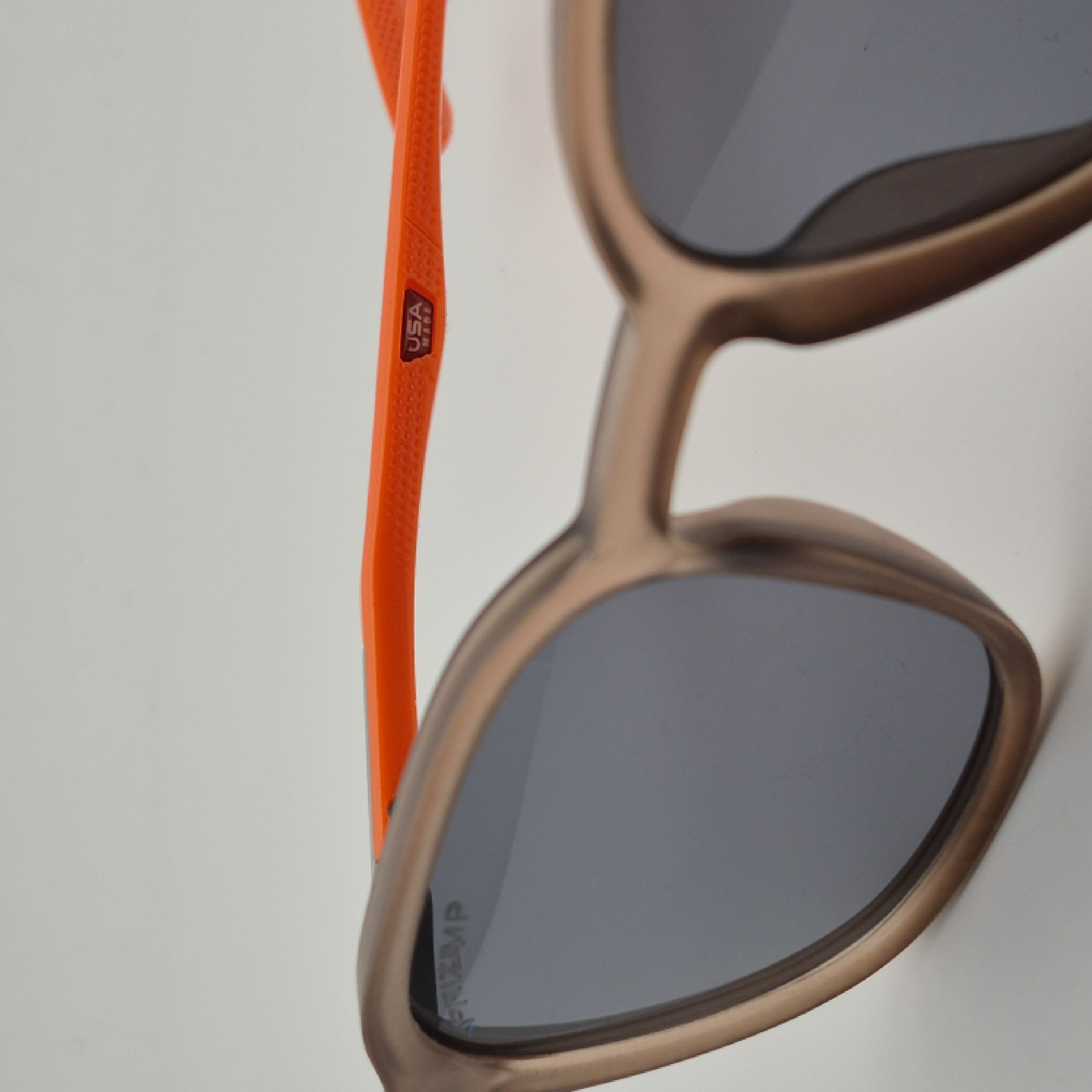 دستههای نارنجی تضاد رنگی جذابی با فریم قهوهای ایجاد کرده و این عینک را به انتخابی جسورانه و چشمگیر تبدیل کرده است.