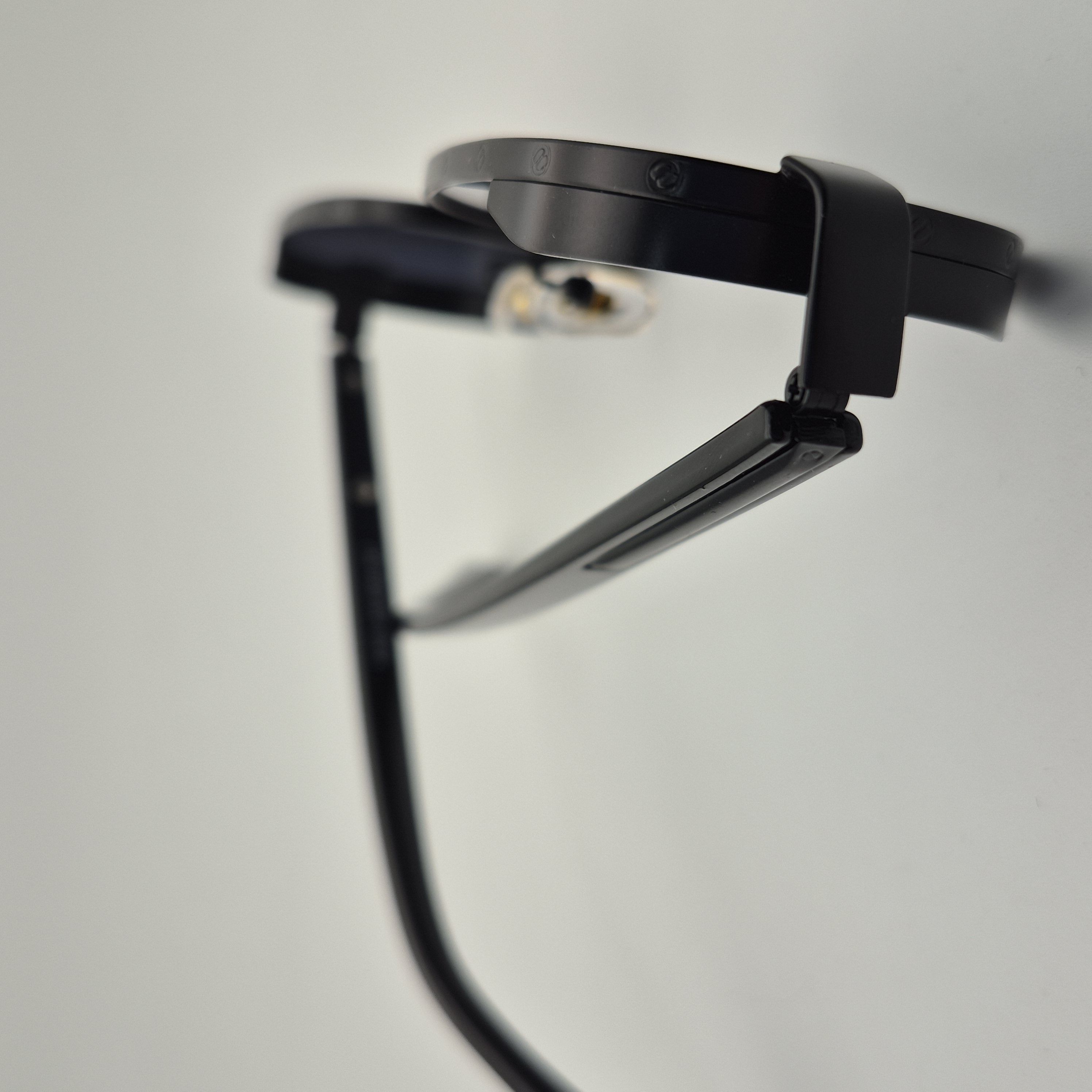 فریم فلزی این مدل، استحکام مناسب را در کنار وزن سبک فراهم کرده و وجود لولاهای پلاستیکی باعث عملکرد نرم و دوام بیشتر دستهها شده است. همچنین پدهای بینی قابل تنظیم، باعث میشود عینک به خوبی روی صورت قرار گرفته و فشار اضافی ایجاد نکند.