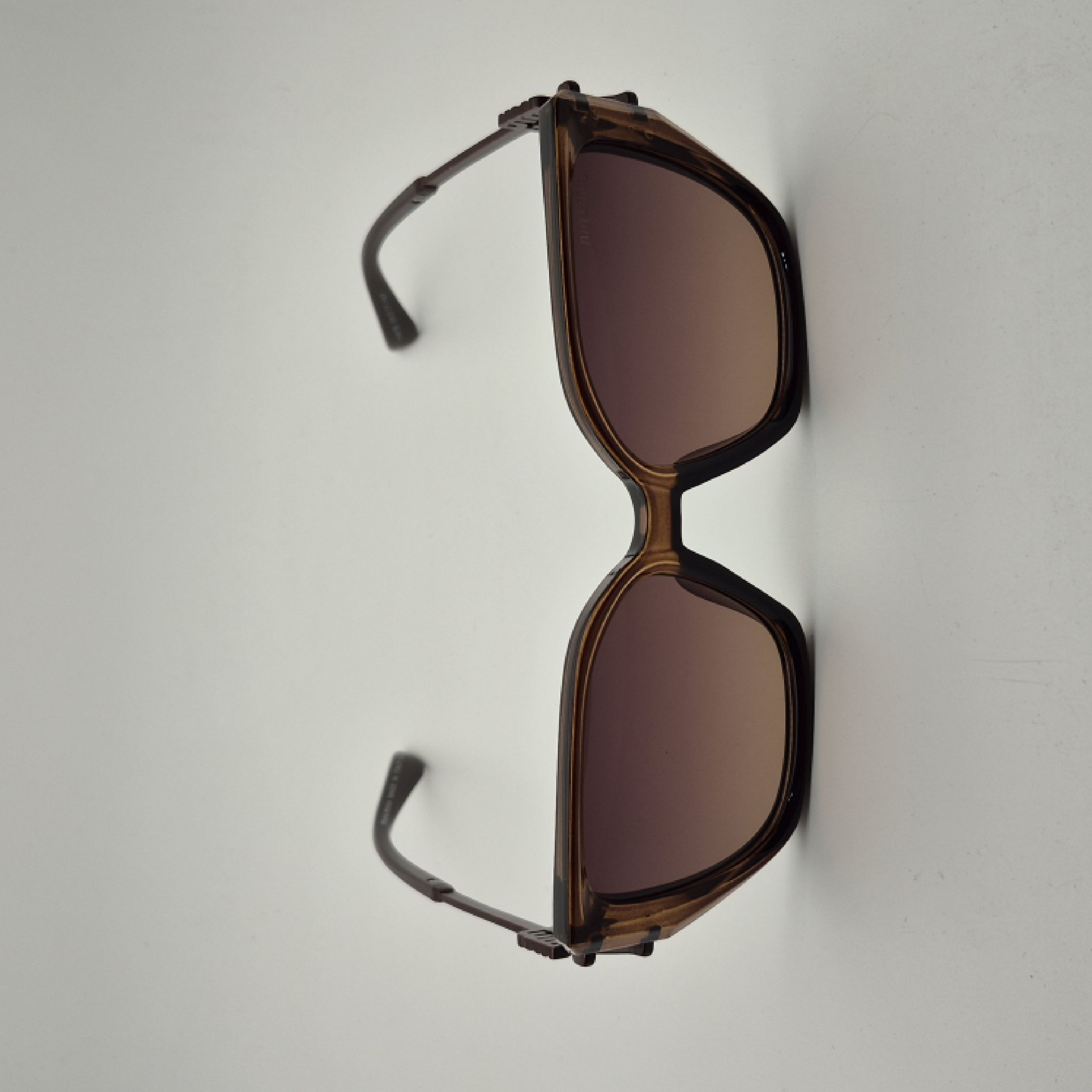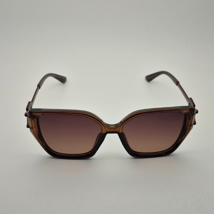 فریم این عینک با ترکیب رنگ قهوهای طراحی شده که جلوهای گرم، کلاسیک و در عین حال مدرن به چهره میبخشد. عدسی دودی استاندارد علاوه بر زیبایی، محافظت کامل در برابر اشعههای مضر UV را فراهم میکند و باعث کاهش خستگی چشم در نور شدید خورشید میشود.