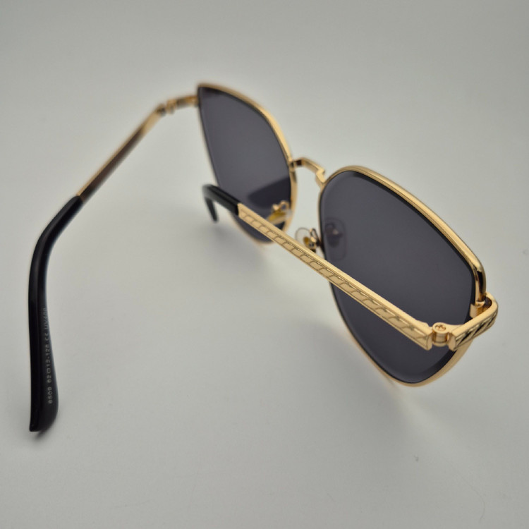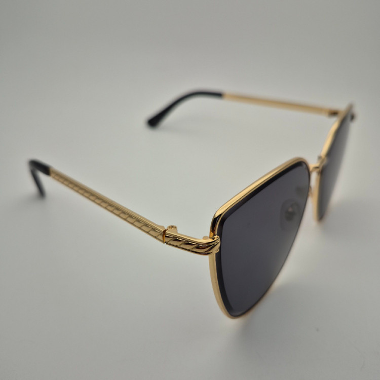 عینک آفتابی زنانه با فریم فلزی رنگ طلایی و عدسی مشکی، انتخابی شیک و جذاب برای استایلهای فشن و روزمره است. طراحی خاص روی دستهها و پددار بودن عینک، راحتی و جلوه خاصی هنگام استفاده ایجاد میکند. این مدل بیشتر جنبه فشن داشته و مناسب همه سبکها است.