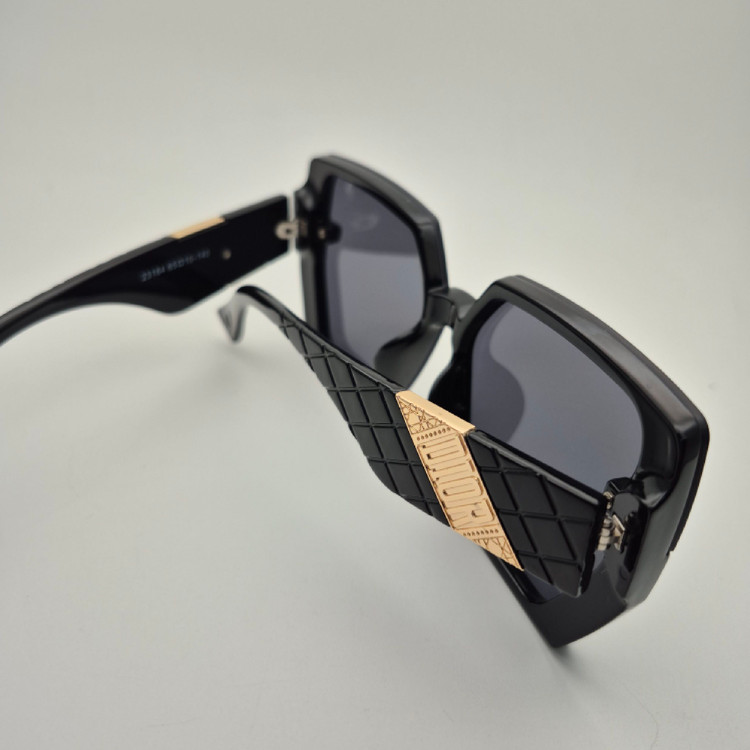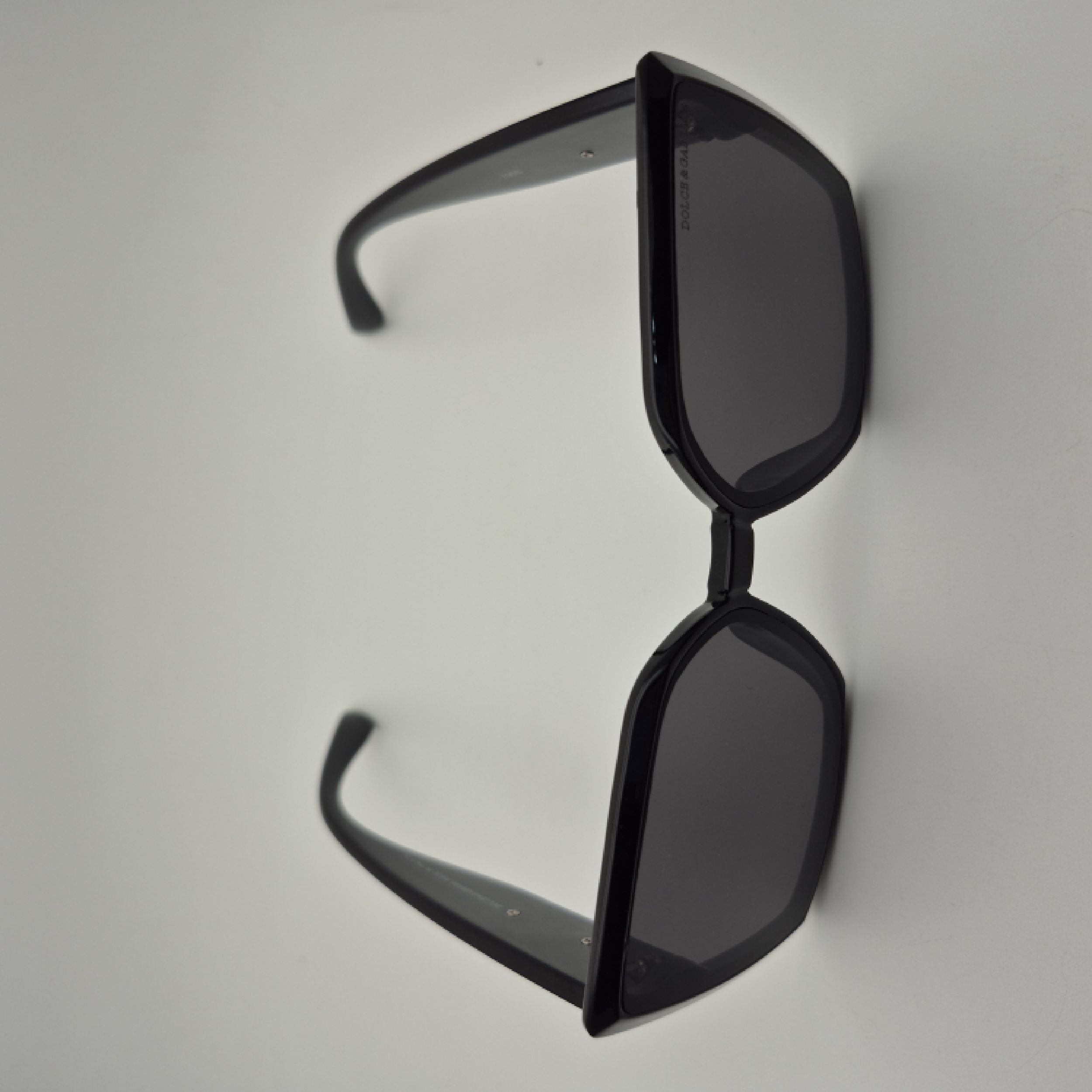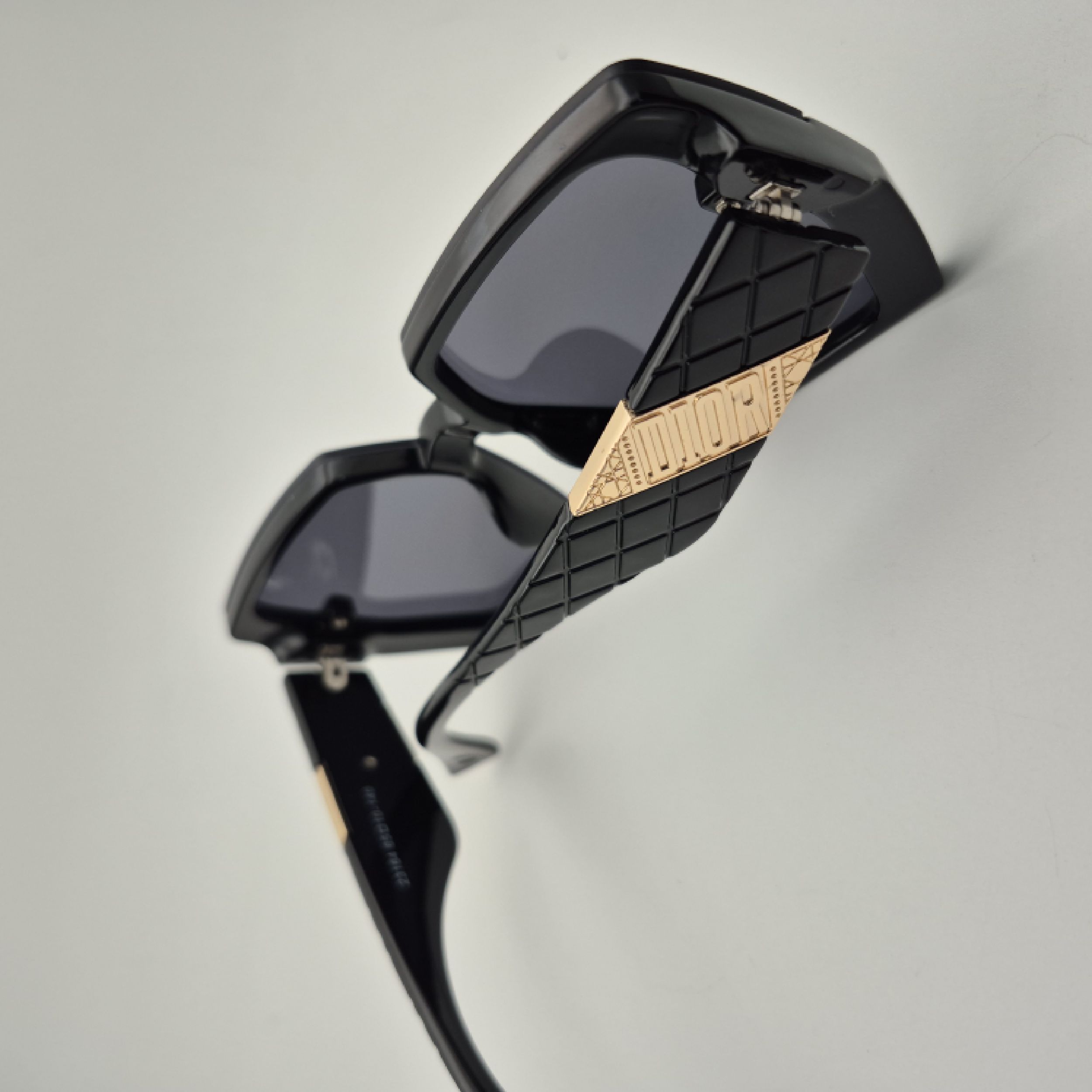 عینک آفتابی لوکس با طراحی مدرن و چندضلعی، ساخته ایتالیا. فریم مشکی و لولای فلزی مقاوم، دوام و کیفیت بالایی به عینک بخشیدهاند و حک برند روی دسته، اصالت و جلوه خاصی ایجاد میکند. این مدل ترکیبی از شیک بودن و راحتی در استفاده روزمره است.