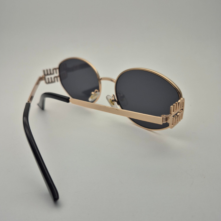 عینک آفتابی فلزی از برند لوکس Miu Miu با طراحی ظریف و بسیار شیک، انتخابی عالی برای افرادی است که به استایل خاص و متفاوت اهمیت میدهند. این عینک کاملاً فلزی بوده و در عین استحکام، وزن سبک و راحتی بالایی هنگام استفاده دارد. حک شدن نام برند روی دسته عینک، نشاندهنده اصالت و کیفیت ساخت آن است.