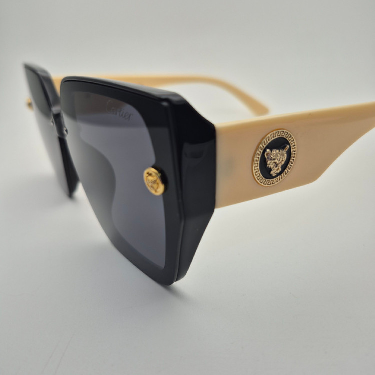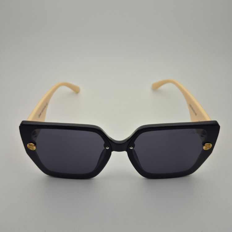 عینک آفتابی زنانه از برند لوکس Cartier با طراحی فوقالعاده شیک و مدرن، انتخابی ایدهآل برای افرادی است که به استایل لوکس و چشمگیر اهمیت میدهند. این مدل دارای فریم بزرگ مربع شکل با رنگ مشکی و دسته کرم است که ترکیب رنگی جذاب و خاصی ایجاد کرده و جلوهای متمایز به چهره میبخشد. طراحی دقیق و جزئیات زیبای روی دسته، حس لوکس بودن و کیفیت بالای محصول را برجسته میکند.